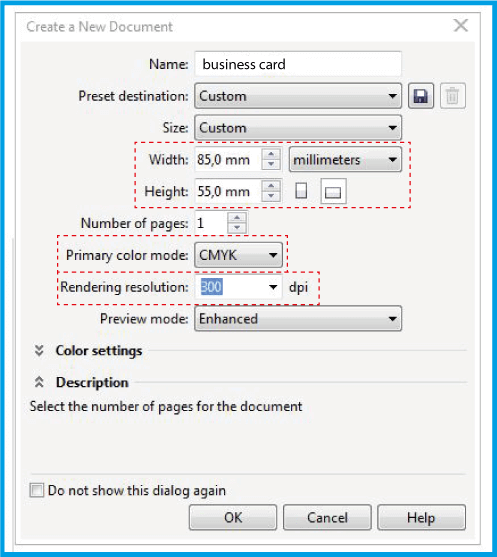 .V tomto okne definujte názov a rozmery dokumentu. Vyberte pole a do zadajte .